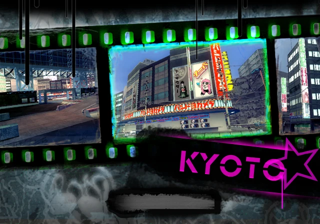 It is based off of the city of Kyoto, Japan. The level contains representations of Kyoto Station, and the Yodobashi Camera (ヨドバシ カメラ) store, represented as Bashidoyo Camera (バシドヨ カメラ) in-game; although the store does exist in Kyoto, the building itself is actually from Shinjuku, Japan.