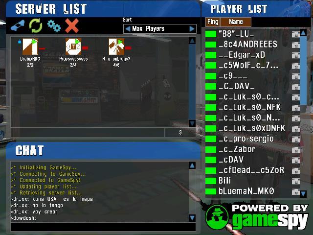 The Tony Hawk's Pro Skater 3 multiplayer lobby on PC.